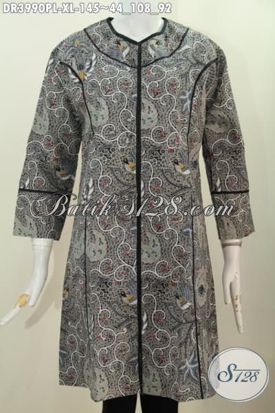 Dress Batik Abu-Abu Desain Modis Untuk Penampilan Makin Cantik Bertubi-Tubi, Busana Batik Jawa Halus Proses Print Harga Terjangkau [DR3990PL-XL]