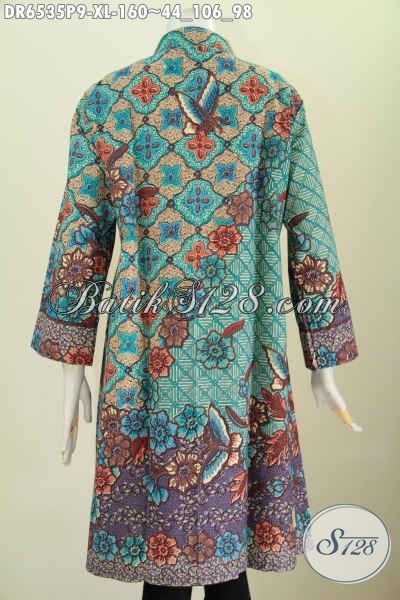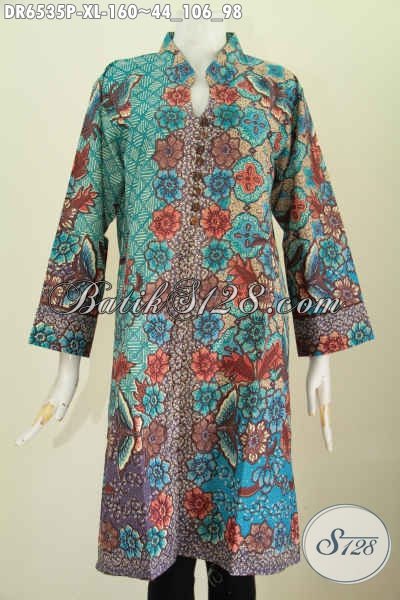 Dress Batik Dari Solo, Busana Batik Kwalitas Bagus Bahan Adem Proses Printing Pakai Kancing Banyak Dan Saku Kanan Kiri Harga 160 Ribu [DR6535P-XL]