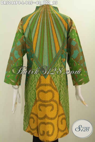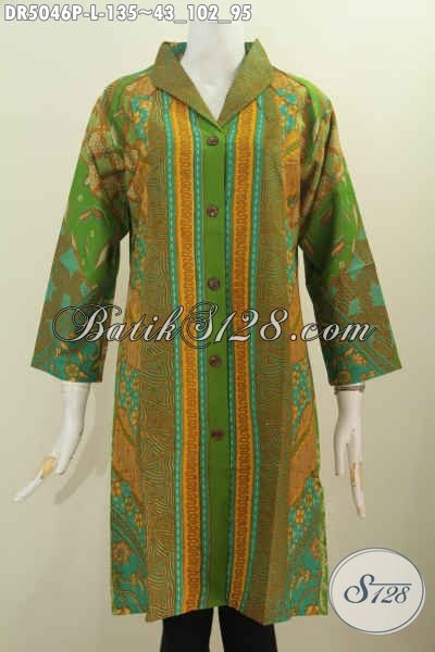Dress Batik Dengan Nuansa Hijau, Pakaian Batik Halus Desain Kerah Langsung Motif Klasik Proses Printing Yang Elegan Buat Rapat Serta Istimewa Untuk Seragam Kerja [DR5046P-L]