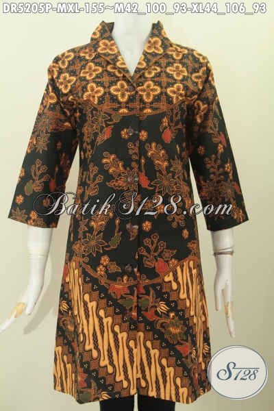 Dress Batik Elegan Warna Klasik Proses Printing Model Kerah Langsung Daleman Non Furing, Cocok Baut Acara Formal [DR5205P-M , XL]