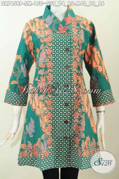 Dress Batik Hijau Motif Mewah, Baju Batik Kerah Miring Nan Modis Dan Berkelas Hanya 150K [DR7458P-S , M]