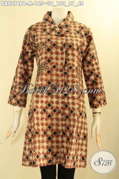 Dress Batik Istimewa Desain Kerah Miring Pakai Kancing Depan Lengan 7/8, Bahan Halus Motif Bagus Jenis Printing Cabut, Penampilan Anggun Menawan [DR9274PB-M]