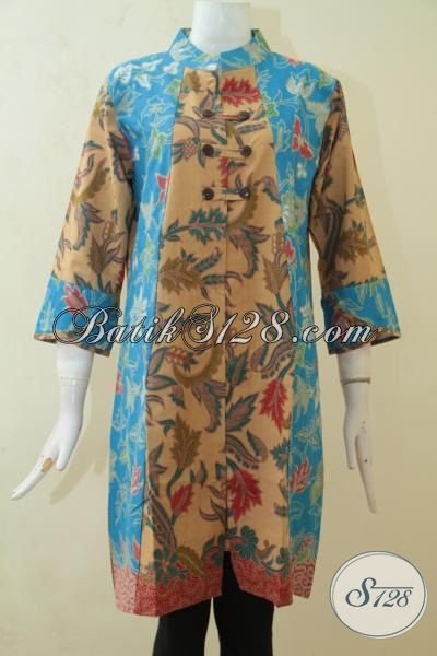 Dress Batik Istimewa Kombinasi Coklat Dan Biru, Baju Batik Printing Halus Model Terbaru Yang Lebih Mewah Berpadu Dengan Dual Motif Lebih Modis [DR3163PL-M]