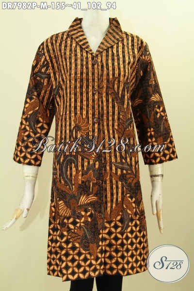 Dress Batik Jawa Tengah Motif Klasik, Busana Batik Solo Terbaru Kwalitas Istimewa Bahan Adem Model Krah Langsung, Pas Untuk Acara Resmi [DR7982P-M]