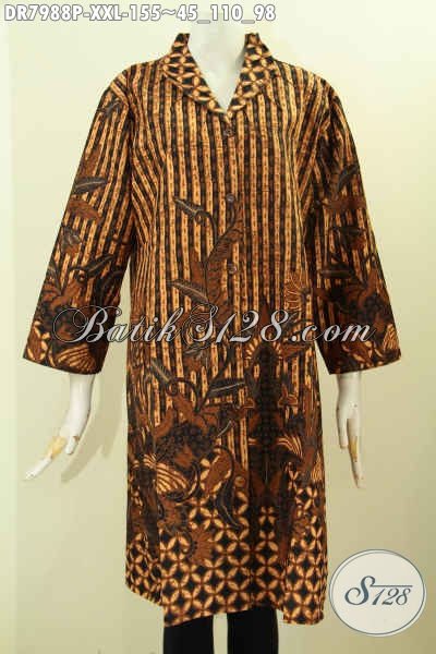 Dress Batik Jawa Terkini, Pakaian Batik Terusan Nan Istimewa Yang Membuat Wanita Gemuk Cantik Menawan [DR7988P-XXL]