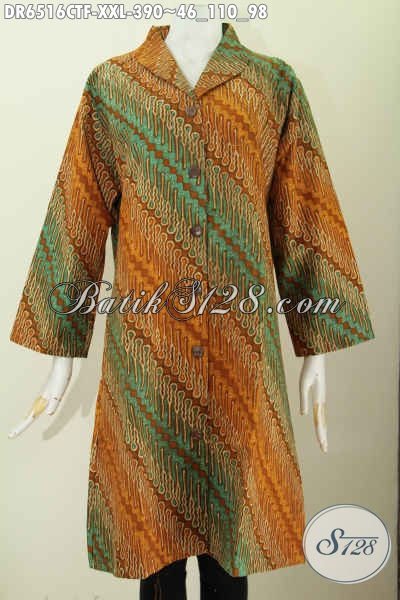 Dress Batik Jumbo Motif Klasik, Baju Batik Terusan kerah Langsung Bahan Halus Proses Cap Tulis Daleman Pake Furing Tricot [DR6516CTF-XXL]