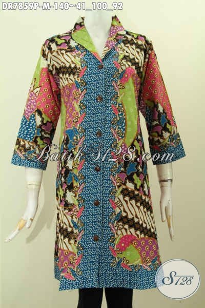 Dress Batik Kerah Langsung Wanita Muda Cocok Untuk Kerja Dan Acara Resmi, Pakaian Batik Modis Halus Proses Printing Motif Mewah Harga 140K [DR7859P-M]