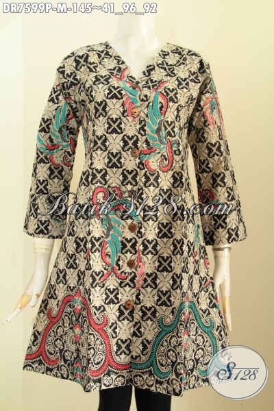 Dress Batik Kerah V, Baju Batik Terussan Mekar Bawah, Busana Batik Printing Motif Mewah Pilihan Tepat Tampil Cantik Dan Anggun [DR7599P-M]