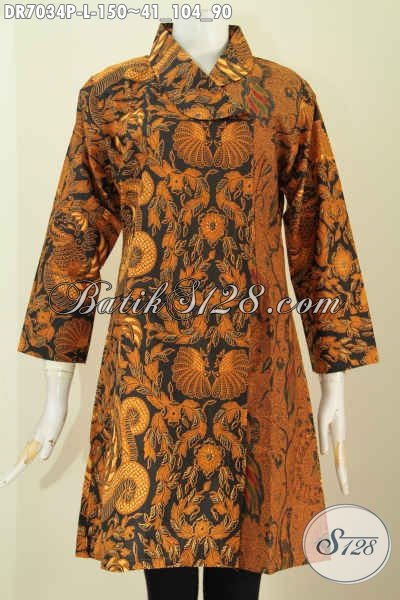 Dress Batik Klasik 2 Motif, Baju Batik Wanita Untuk Kerja Bahan Halus Proses Printing Desain Kerah Miring Harga 100 Ribuan Saja [DR7034P-L]