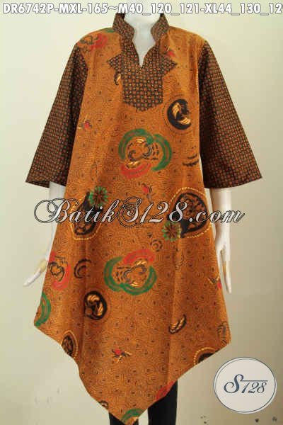 Dress Batik Klasik, Busana Batik Jawa Halus Model A Simetris, Baju Batik Kerja Proses Printing Mewah Harga Terjangkau [DR6742P-M , XL]