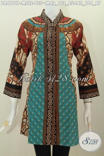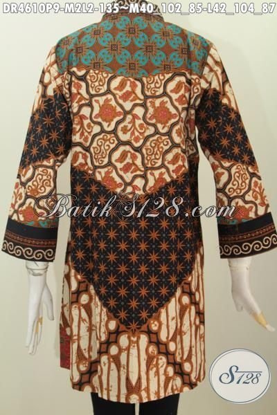 Dress Batik Klasik Motif Sinaran, Pakaian Batik Kerja Wanita Karir Untuk Tampil Elegan, Berbahan Halus Proses Printing Harga 100 Ribuan [DR4610P-M , L]