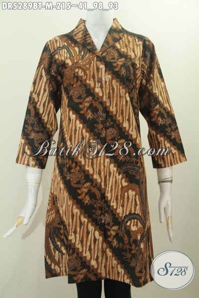 Dress Batik Kombinasi Tulis Model Terusan Kerah Langsung Nan Elegan Dengan Motif Klasik, Pakaian Batik Kerja Wanita Karir Untuk Penampilan Lebih Istimewa Harga 215 Ribu [DR5289BT-M]