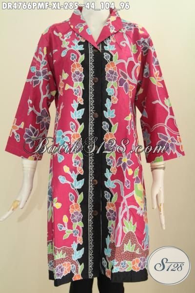 Dress Batik Merah Kombinasi Hitam Motif Bunga, Baju Batik Kwalitas Istimewa Daleman Full Furing Desain Terkini Yang Modis Buat Acara Santai Dan Formal [DR4766PMF-XL]