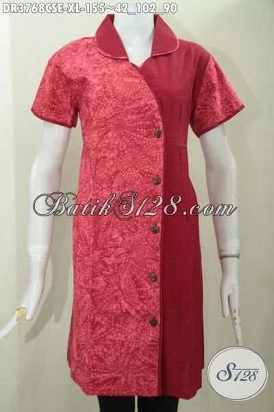 Dress Batik Model Mewah Harga Murah, Baju Batik Cap Smoke Lengan Pendek Berbahan Halus Katun Dan Embos Bikin Cewek Terlihat Cantik Sempurna [DR3768CSE-XL]
