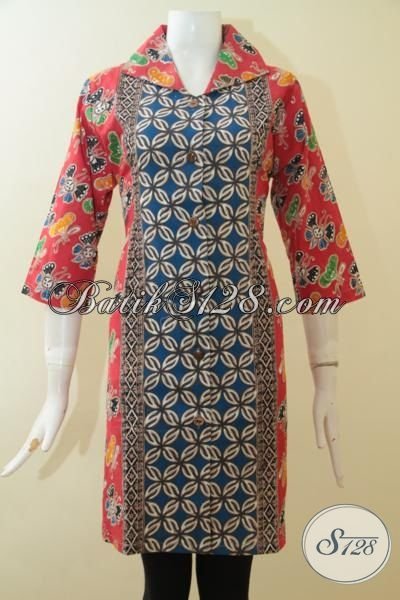 Dress Batik Model Paling Baru Yang Berpadu Tiga Motif Keren Nan Mewah, Baju Batik Cap Tulis Kwalitas Premium Asli Buatan Solo [DR2682CT-M]