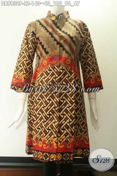 Dress Batik Modis Cocok Untuk Seragam Kerja Dan Ke Acara Resmi Tampil Berkelas, Model Kerah Shanghai Kancing Depan Sampai Bawah Lengan 7/8 [DR9830P-L]