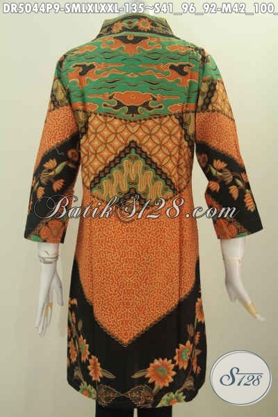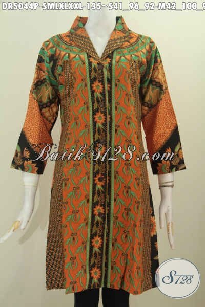 Dress Batik Motif Klasik Desain Mewah Dengan Kerah Model Langsung, Pakaian Batik Wanita Masa Kini Yang Selalu Ingin Tampil Gaya Dan Elegan, Bahan Halus Proses Printing Harga 135K [DR5044P-M]