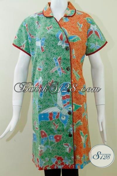Dress Batik Motif Kupu Model Tabrak Warna Hijau Dan Orange [DR060P-XL]