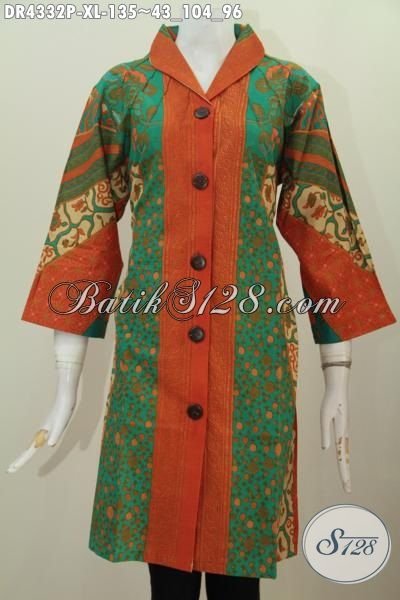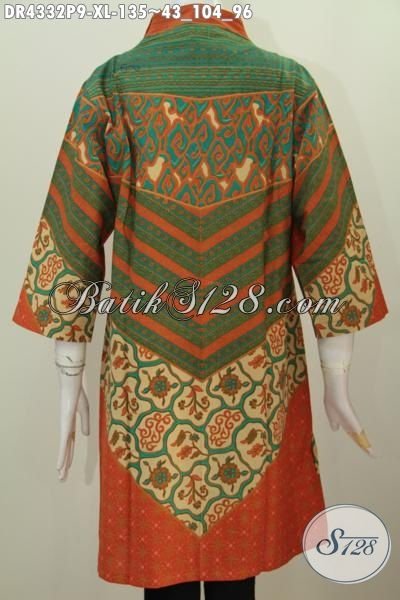 Dress Batik Motif Sinaran Matahari Kwalitas Bagus Haga Murah, Baju Batik Solo Terkini Desain Mewah Berbahan Halus Proses Printing Hanya 125K [DR4332P-XL]