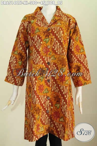 Dress Batik Premium Motif Klasik, Pakaian Batik Solo Halus Bahan Adem Proses Cap Tulis Untuk Wanita Dewasa Terlihat Mempesona Dan Elegan [DR6514CTF-XL]