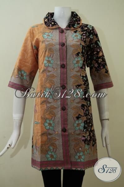 Dress Batik Print Buatan Solo Indonesia, Busana Batik Modern Desain Elegan Dengan Kombinasi Warna Dan Motif Trend Terkini Cocok Buat Perempuan Karir [DR2157P-S]