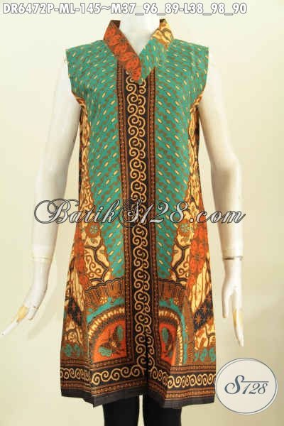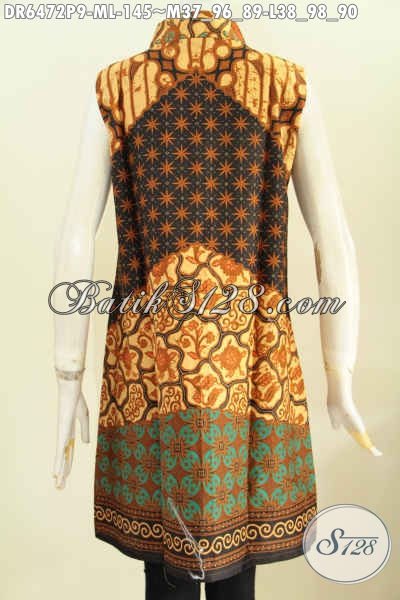 Dress Batik Printing Halus, Busana Batik Solo Terkini, Produk Pakaian Batik Untuk Tapil Modis Dan Elegan Harga 100 Ribuan [DR6472P-M , L]