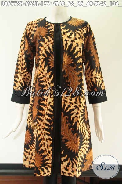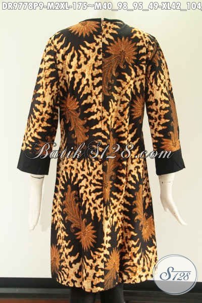 Dress Batik Resleting Depan Model Pias Kombinasi Kain Polos Katun Dengan Lengan 7/8, Motif Tren Terbaru Jenis Printing. Menunjang Penampilan Saat Kerja [DR9778P-M , XL]