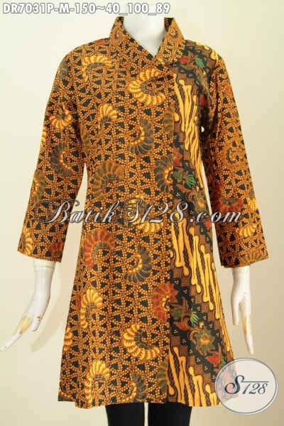 Dress Batik Solo Dual Motif Klasik, Baju Batik Wanita Karir Model Kerah Miring Proses Printing, Tampil Lebih Stylish Dan Berkelas [DR7031P-M]