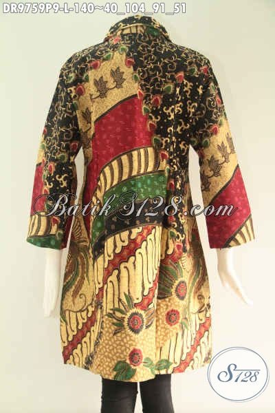 Dress Batik Solo Motif Mewah Harga Murah Jenis Printing, Hadir Dengan Model Kerah Lengan 7/8 Di Lengkapi Kancing Depan Sampai Bawah, Pas Untuk Ke Kantor [DR9759P-L]
