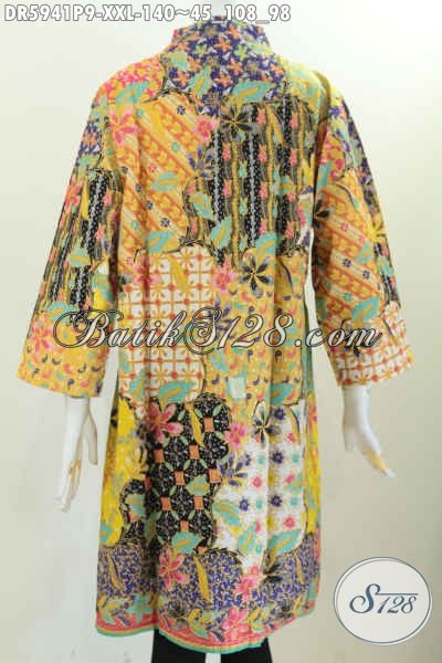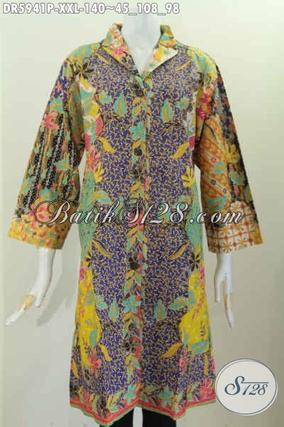 Dress Batik Solo Nan Istimewa, Pakaian Batik Jawa Halus Proses Printing Desain Kerah Langsung Bisa Buat Santai Dan Resmi [DR5941P-XXL]