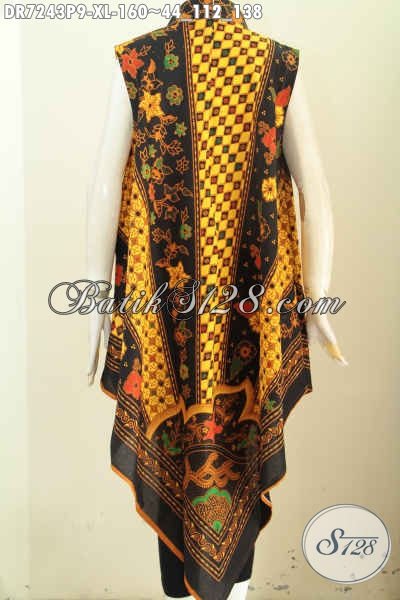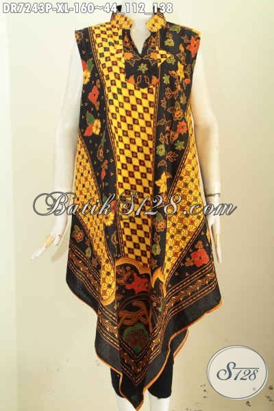 Dress Batik Tanpa Lengan Bikin Wanita Tampil Beda, Busana Batik A Simetris Kwalitas Bagus Resleting Belakang Harga 160K [DR7243P-XL]