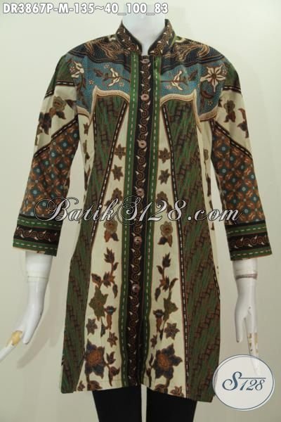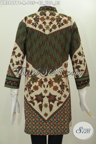 Dress Batik Terbaru Buatan Solo Cocok Buat Kerja Dan Jalan-Jalan, Busana Batik Motif Sinaran Kwalitas Halus Proses Printing Model Kerah Shanghai Modis Banget [DR3867P-M]