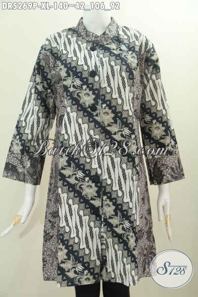Dress Batik Terusan Motif Klasik Proses Printing, Baju Batik Parang Bunga Warna Elegan Deangan Desain Mewah Berkelas Berpadu Kerah Paspol Shanghai Untuk Tampil Lebih Berkharisma [DR5269P-XL]