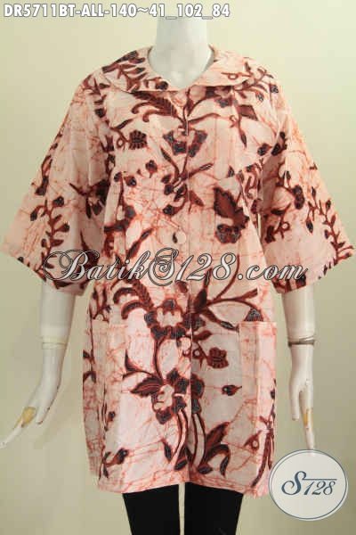 Dress Batik Trendy Dengan Desain Kerah Bulat, Busana Batik Berkelas Untuk Wanita Karir Tampil Gaya Proses Kombinasi Tulis [DR5711BT-All Size]