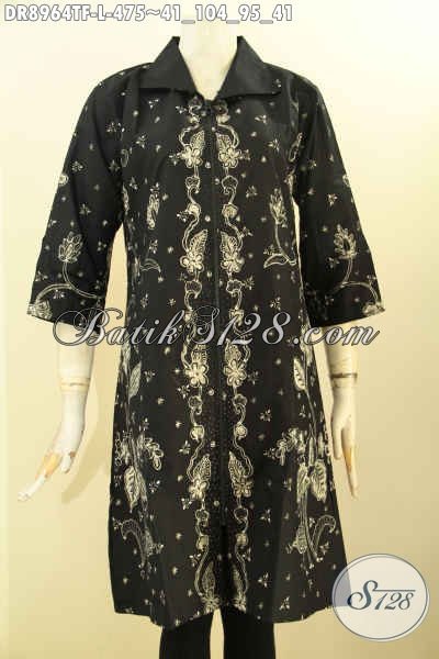 Dress Batik Tulis Elegan, Busana Batik Wanita Full Furing Tricot Nan Mewah Desain Kerah Dengan Resleting Depan Lengan 3/4 Belahan 10cm, Pas Untuk Ke Kantor Dan Acara Formal [DR8964TF-L]