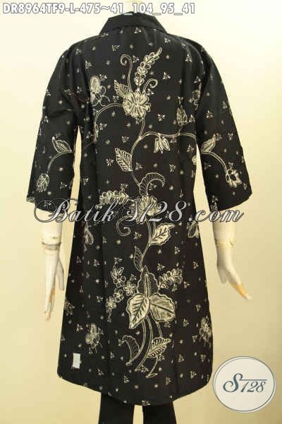 Model : Dress Batik Tulis Daleman Tricot Model Resleting Depan, Pakai Krah, Lengan 3/4 Belah 10cm