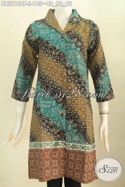 Dress Batik Ukuran Kecil, Busana Batik Modern Kerah Langsung Motif Mewah Berbahan Adem Proses Cap Tulis Tampil Leih Berkharisma [DR5210CT-S]