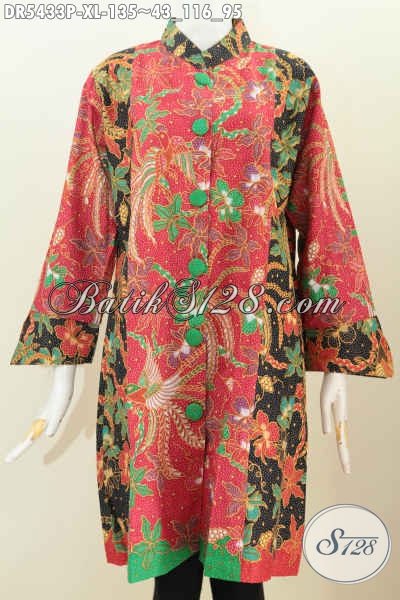 Dress Batik Ukuran XL, Pakaian Batik Perempuan Dewasa Bahan Adem Proses Printing Motif Berkelas Dilengkapi Kancing Besar Trend Mode 2016 [DR5433P-XL]