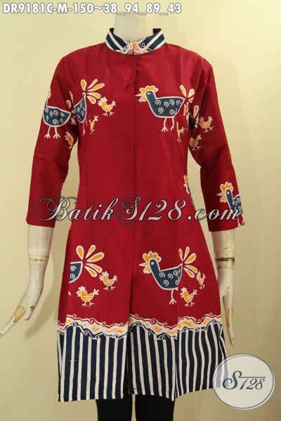 Dress Batik Untuk Acara Santai Maupun Resmi, Pakaian Batik Solo Asli Bahan Halus Motif Unik Proses Cap Desain Kekinian, Wanita Tampil Terlihat Anggun [DR9181C-M]
