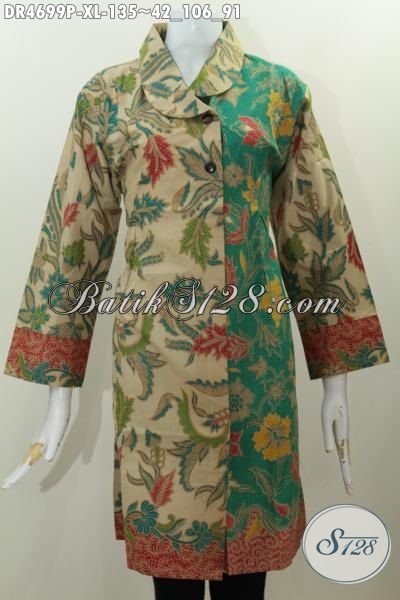 Dress Batik Wanita Dewasa Dengan Desain Dua Warna Berpadu Kerah Miring Nan Elegan, Baju Batik Printing Modis Buatan Solo Penunjang Penampilan Makin Sempurna [DR4699P-XL]