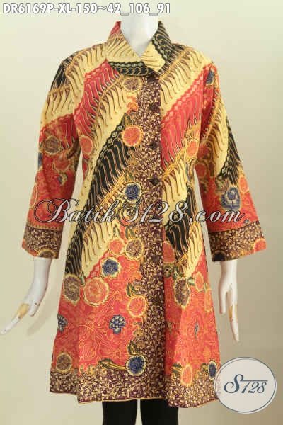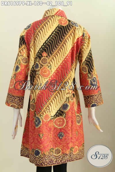 Dress Batik Wanita Dewasa Model Kerah Miring, Baju Batik Solo Trendy Proses Printing Motif Klasik Bahan Halus 150 Ribu [DR6169P-XL]