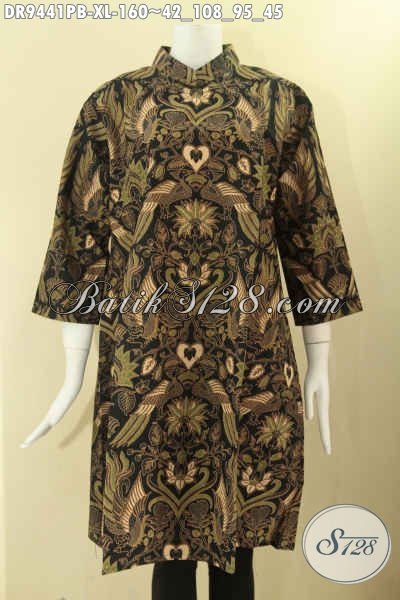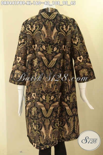 Dress Batik Wanita Dewasa Model Kerah Shanghai Lengan 7/8 Di Lengkapi Resleting Belakang, Bahan Motif Elegan Berbahan Halus Yang Nyaman Di Pakai [DR9441PB-XL]