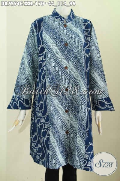 Dress Batik Wanita Gemuk, Baju Batik Kerah Shanghai Big Size, Berbahan Adem Proses Cap Untuk Kerja Dan Acara Formal [DR7254C-XXL]