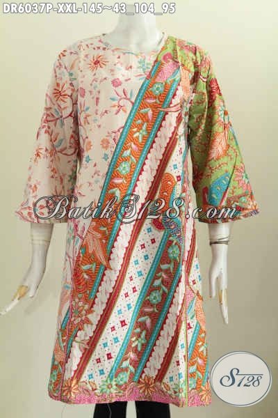 Dress Batik Wanita Gemuk, Pakaian Batik Ukuran 3L Model Klok Pakai Resleting Belakang Bahan Adem Motif Mewah Proses Printing Hanya 145K [DR6037P-XXL]