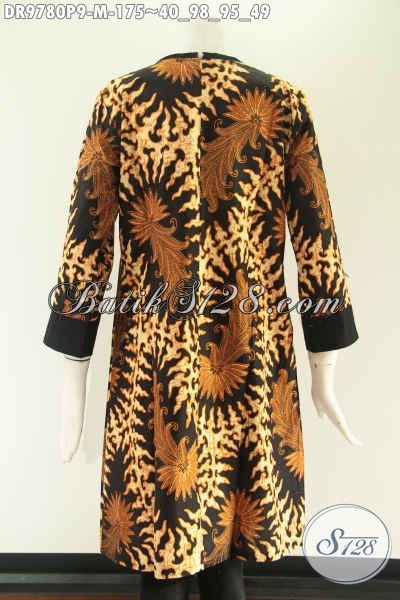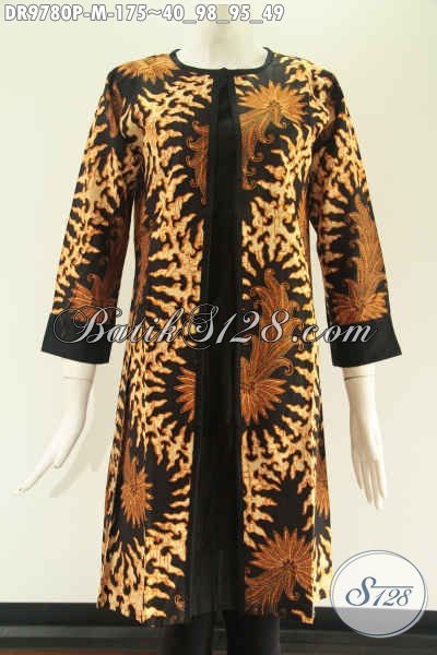 Dress Batik Wanita Kerja Kwalitas Istimewa Kombinasi Kain Polos Katun, Model Pias Pakai Resleting Belakang Dan Lengan 7/8, Cocok Juga Untuk Acara Resmi [DR9780P-M]