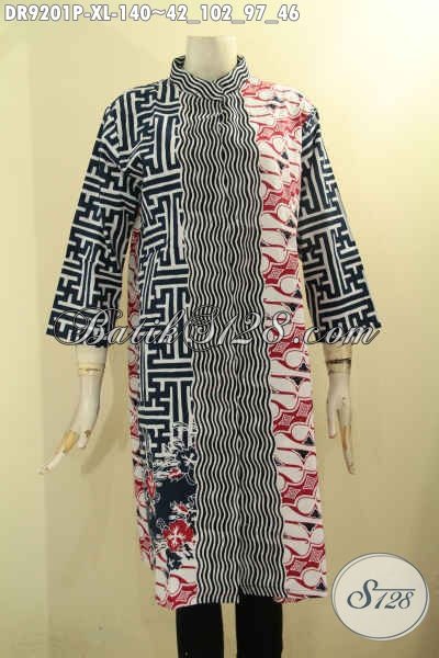 Dress Batik Wanita Modern Nan Berkelas Untuk Kerja Dan Acara Resmi, Busana Batik Kekinian Bahan Halus Motif Kombinasi, Penampilan Anggun Mempesona [DR9201P-XL]