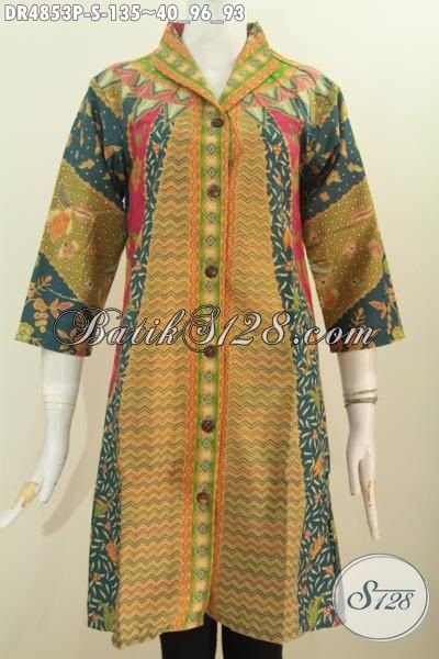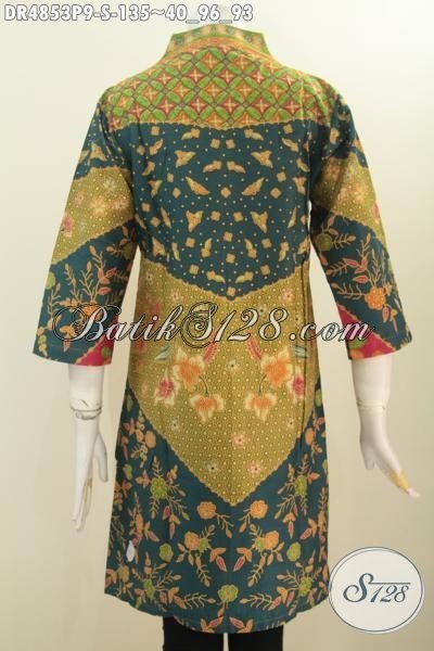 Dress Batik Wanita Muda, Busana Batik Ukuran Kecil Model Kerah Langsung Motif Sinaran Proses Printing Kwalitas Bagus Harga Terjangaku [DR4853P-S]