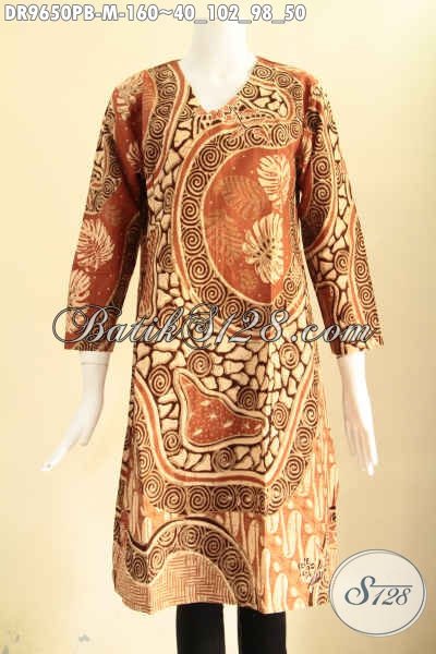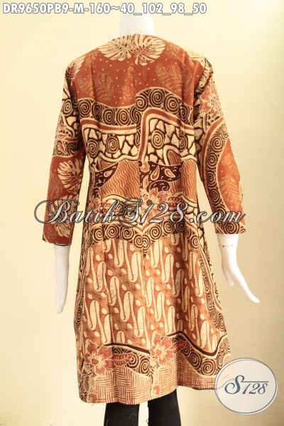 Dress Batik Wanita Muda Lengan Panjang Motif Elegan, Busana Batik Solo Asli Nan Istimewa Model Raleting Belakang, Bikin Penampilan Wanita Lebih Berkelas [DR9650PB-M]