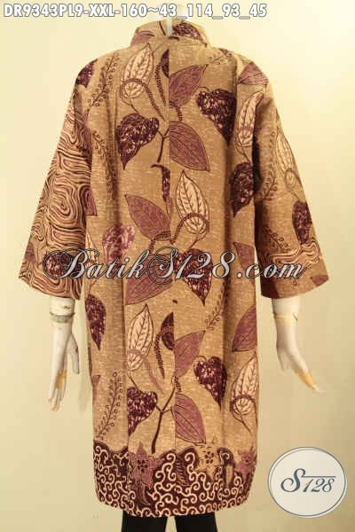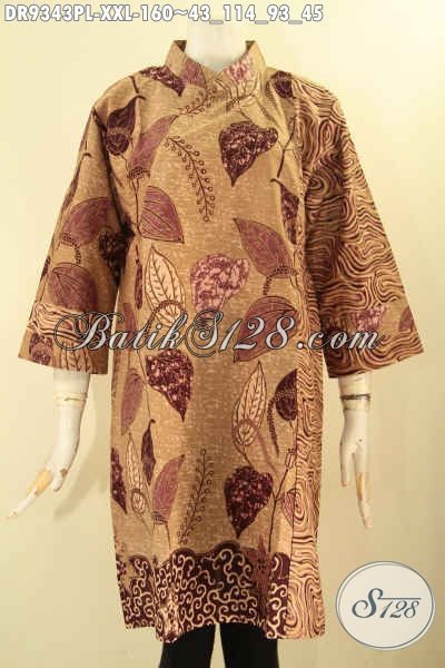 Dress Batik Wanita Terbaru, Busana Batik Istimewa Model Kerah Shanghai Lengan 3/4 Kombinasi 2 Motif Dan Pakai Resleting Belakang, Cocok Banget Untuk Acara Formal [DR9343PL-XXL]