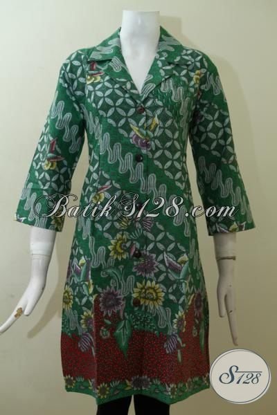 Dress Batik warna Hijau Desain Bagus Berbahan Halus Dan Adem, Pakaian Batik Modern Motif Klasik Pas Buat Kerja Dan Pesta [DR2516P-L , XL , XXL]